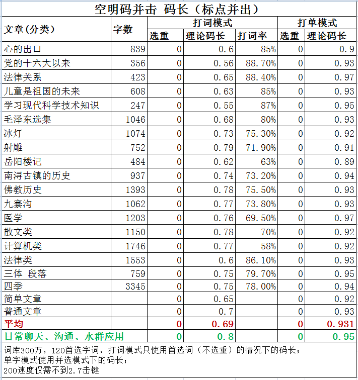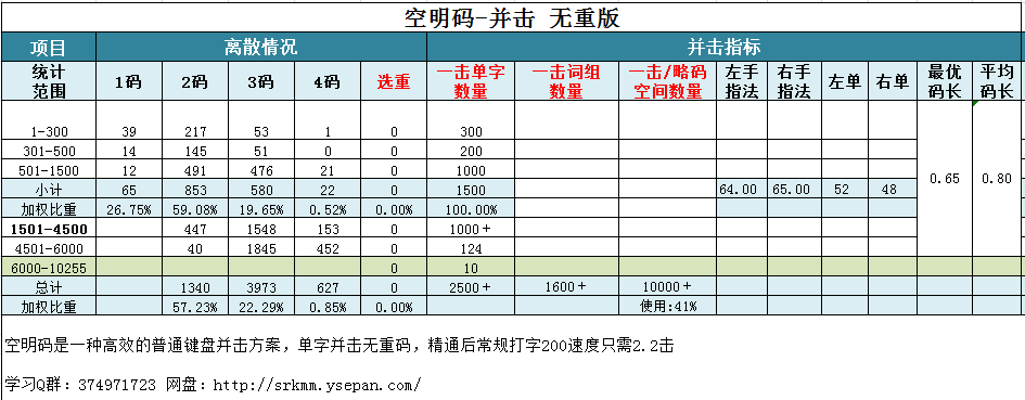 2015年设计用于普通键盘的速录方案,用60码元编码,1万单字无重码(含8105通规),300万词库,打词随心所欲,无需担心打空;日用码长0.8,200速度只需3击。